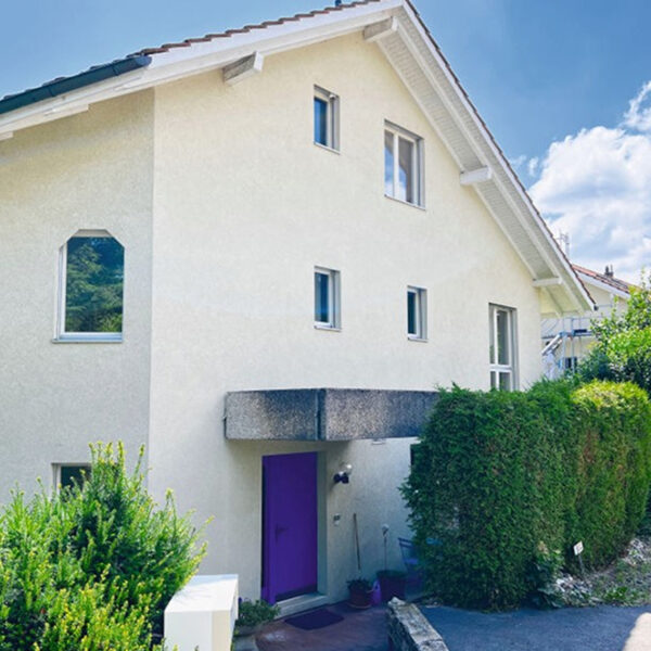 Das Haus überzeugt mit einem durchdachten Grundriss über zwei Etagen, lichtdurchfluteten Räumen und einem schön angelegten Garten, der viel Privatsphäre und Erholungsraum im Freien bietet. Eine sonnige Terrasse sowie ein Balkon erweitern den Wohnbereich nach draussen und schaffen eine ideale Verbindung zwischen Innen- und Aussenraum.